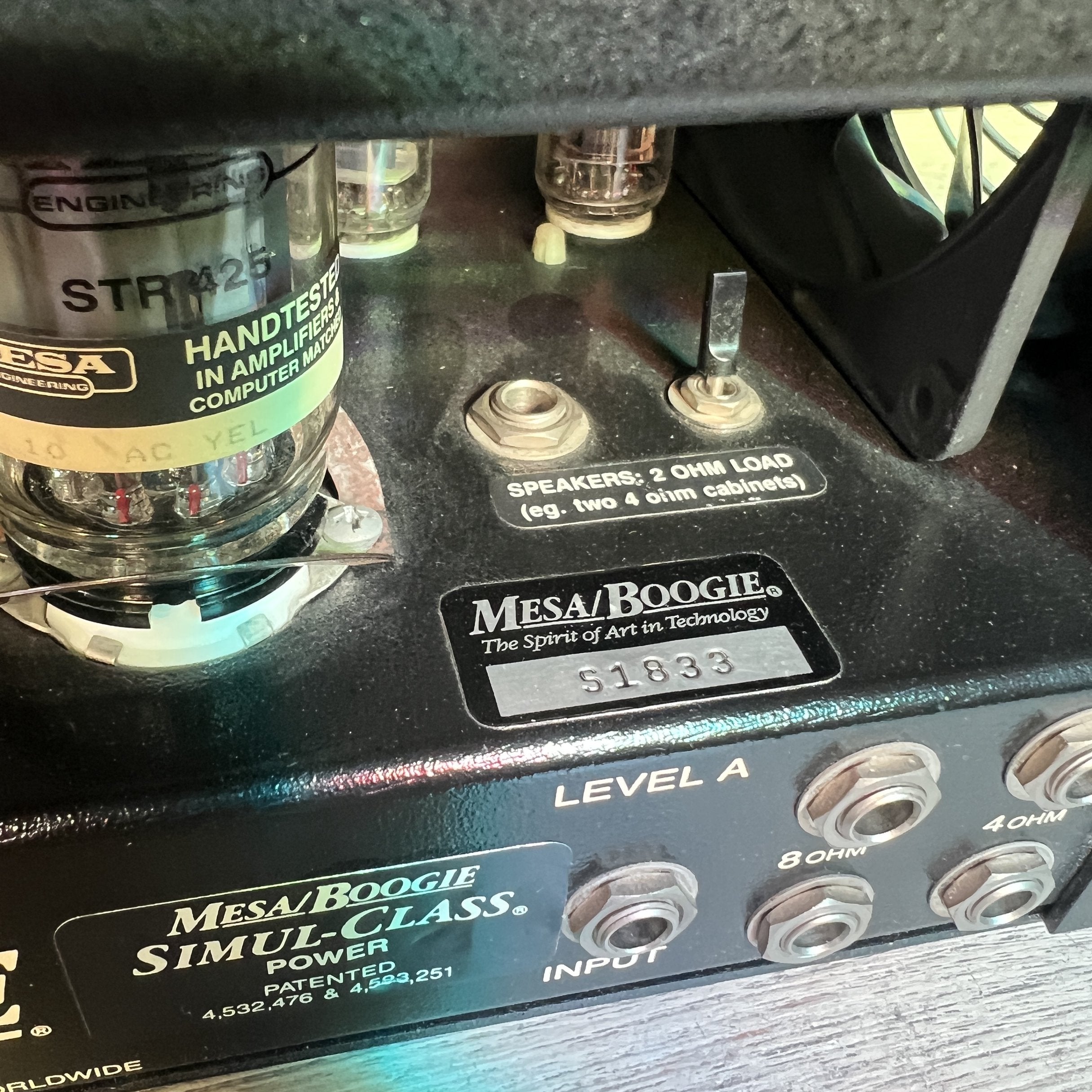 Note: Due to the massive weight of the transformers and the 16-tube complement, this unit is a true heavyweight of the rack era. Serial #S1833 is a clean, well-preserved example of Mesa engineering at its peak.