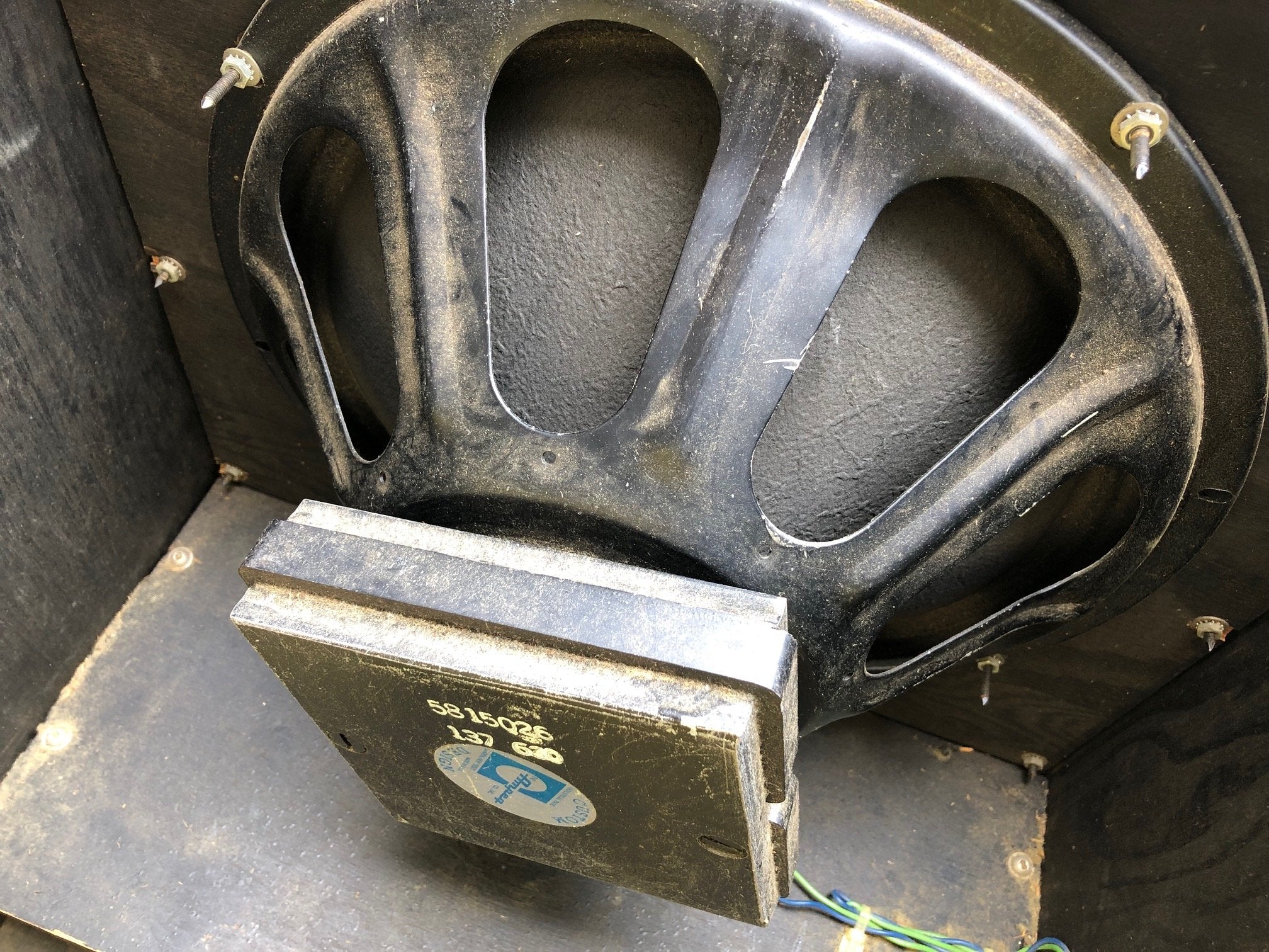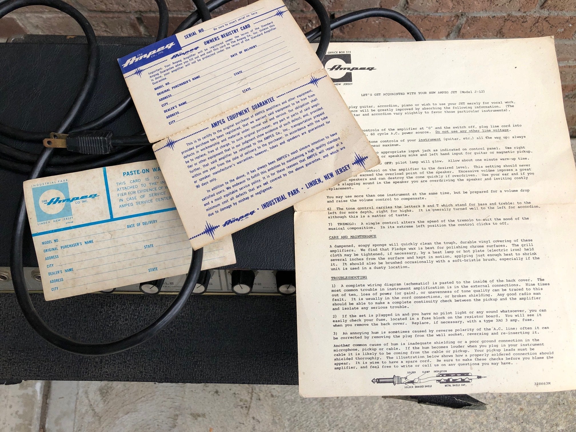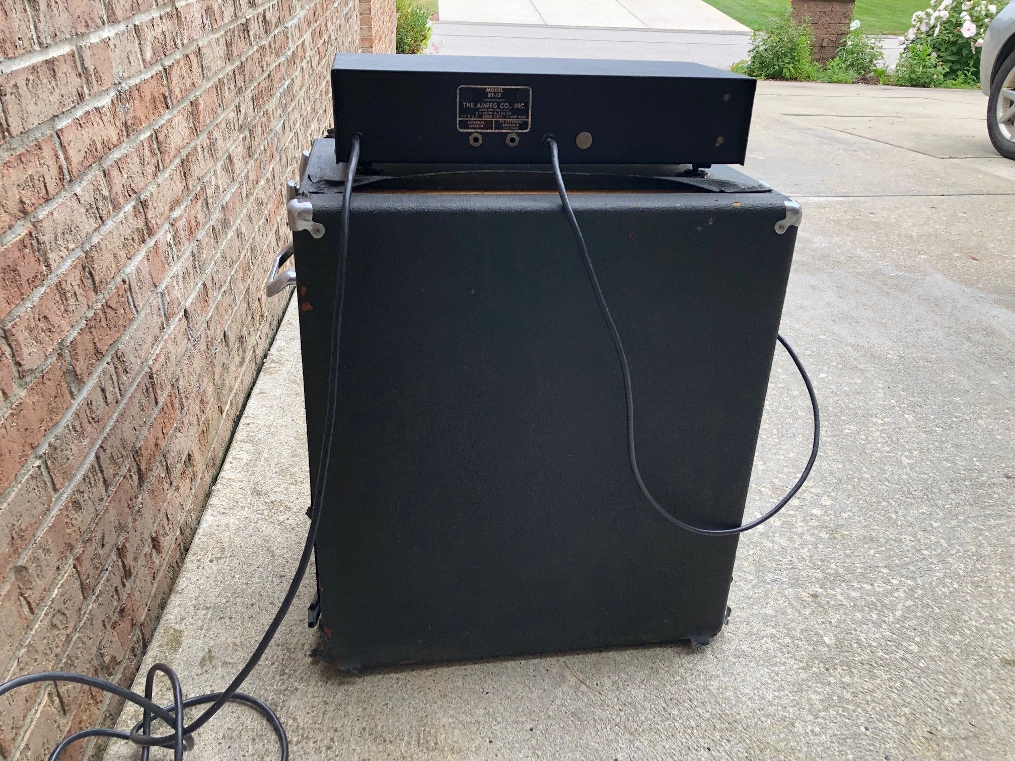 Here is a fully functioning and very nice sounding 1960's Ampeg BT-15 amp. This solid state amp sounds really nice plugged in. All controls work properly. No issues with sound in any way. Tolex has quite a few signs of wear and tear from over the years. Bottom is almost completely gone. But overall, it actually looks ok and could be fixed up with a little bit of effort. The faceplate lights up still also. Comes with some paperwork that came with the amp when new also. 15 inch speaker is original and in excellent shape.